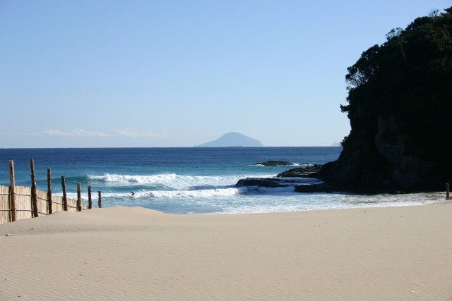 서핑으로 유명. 섬 동쪽에 7km나 이어지는 백사장! 해중온천과 리아스식 해안도 볼거리. 아래에 소개하는 시키네지마(式根島)와 배로 10분 거리.