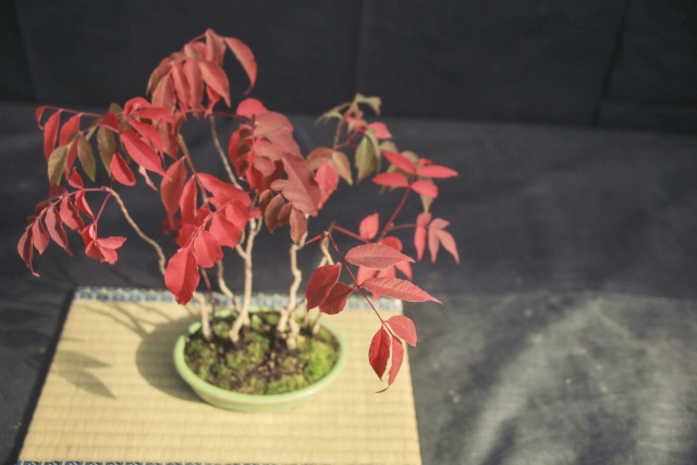 ‘모미지(モミジ)’, 즉 ‘단풍나무’도 인기 미니 분재 중 하나입니다. 방 안에서 단풍을 보는 것도 큰 기쁨이겠지만, 잎이 달려 있지 않은 나무 줄기도 무척 아름답습니다. 봄에는 메츠미(순 자르기, 순 뽑기), 여름에는 크게 자란 잎을 가위로 다듬는 하가리(葉刈り)... 해야 할 작업이 무척 많아 부지런한 사람에게 적합한 분재 나무입니다. 가지를 늘리기 위해서는 순과 가지가 자라는 방향을 읽어야 하는 점도 중요한 포인트. 키우다 보면 정원사, 조경사 분들의 작업을 잘 이해하게 될 것 같습니다.