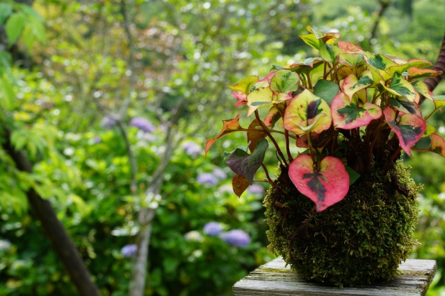 ‘코케다마’는, 뿌리를 케토츠치(ケト土)라고 하는 점토성 흙으로 둥글게 감싼 뒤 ‘코케(苔)’, 즉 이끼를 심은 것으로, 화분에 심은 분재와 달리 그 자체로 이끼까지도 즐길 수 있는 분재의 한 방식입니다.