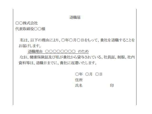 私は、以下の理由により、〇年〇月〇日をもって、貴社を退職することを お届けします。 退職理由 〇〇〇〇〇〇〇〇 のため