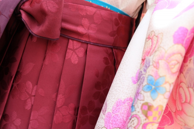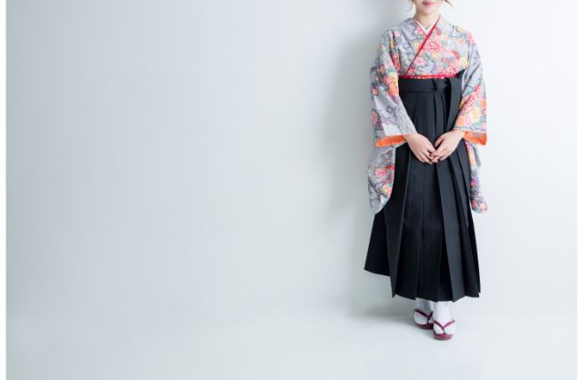 여성이 입는 ‘안돈바카마(行灯袴)’는 바짓가랑이가 없는 롱스커트 형태로, 대학 졸업식에서 여학생들이 자주 입습니다.
