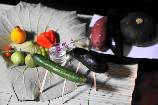 또한, 오봉 때에는 조상님들의 영이 자손들을 잘 찾아오실 수 있도록 '초칭(提灯)'을 밝히고, 올 때 빨리 타고 오시라고 '오이'로 말[馬]을, 가실 때 천천히 가시라고 '가지(ナス)'로 소[牛]를 만들기도 합니다.