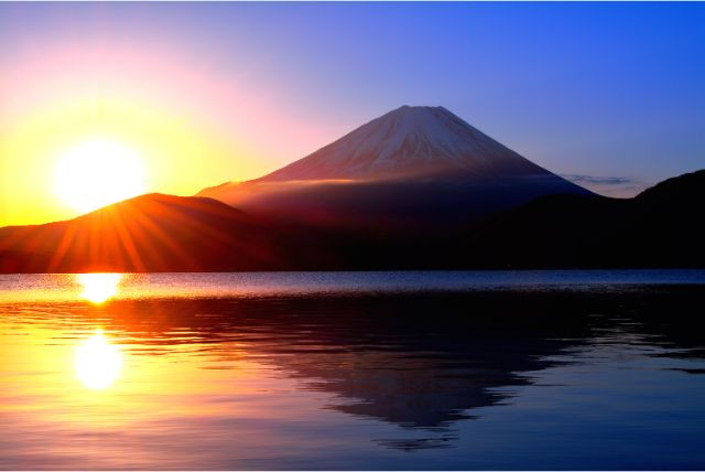 일본의 일출 하면 아마도 가장 먼저 생각날 ‘후지산 일출’. 그중에서도 야마나시현의 모토스코(本栖湖) 호수는 새해 첫 일출 명소로 유명한데요. 표고 1485미터의 ‘류우가다케(竜ヶ岳)’ 위로 태양이 떠오르면 다이아몬드처럼 반짝이는 ‘다이아몬드 후지산’을 볼 수 있어 많은 이들이 찾고 있습니다. (*‘다이아몬드 후지산’ 사진 참고: https://www.yamanashi-kankou.jp/fujisan/tanosimo/daiamond_fuji/ryugatake.html)