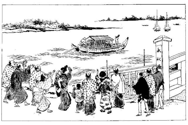 죄인을 호송하는 것은 교토초 집행관 수하의 도우신(同心)으로, 도우신은 죄인의 친척 중 중심 인물 한 사람이 오사카까지 함께 배를 타고 가는 것을 허락해주는 것이 관례였다. 위에 보고되는 일은 아니었지만 소위 관용을 베푸는 것, 즉 암묵적 허가였다.
