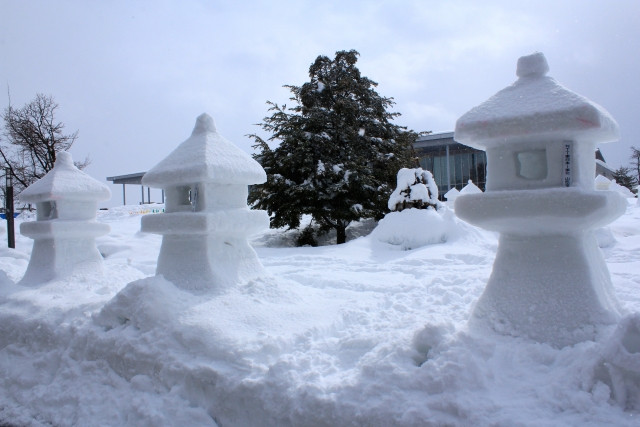 현의 전역이 호설지대로 지정되어 있는 야마가타현. 그중 특별호설지대로 지정되어 있는 요네자와시(米沢市)의 마쓰가미사키 공원(松が岬公園; まつがみさきこうえん)에서는 매년 2월 둘째 토요일, 일요일에 ‘우에스기 눈 등롱 축제’를 개최합니다. 약 300기(基)의 눈덮인 등롱(석등)에 촛불을 밝힌다니, 정말 환상적일 것 같죠?