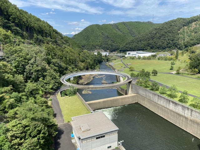 일본건축학회상(1999년. 주변 정비 부문), 토목학회 디자인상(2003년)을 수상한 만큼 댐의 외관도 유심히 살펴보게 됩니다. 특히 원형으로 된 전망 다리(위의 사진 참고)는 순환하는 런웨이 같은 느낌도 들어 여럿이 어울려 패션 화보 같은 느낌을 사진을 찍어보고 싶어집니다.