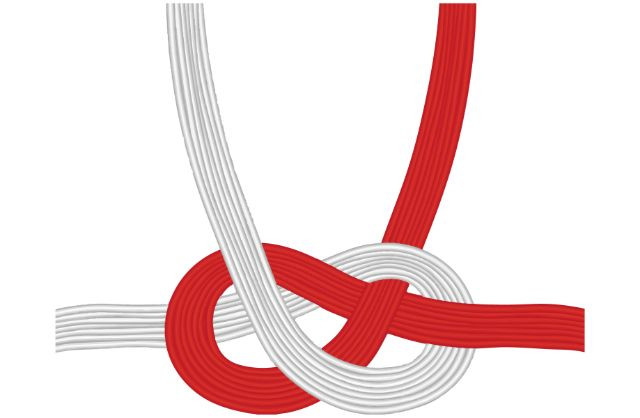 ・무스비키리(結び切; むすびきり): 한 번 묶으면 풀기 어려운 ‘가타무스비(固結び)’. ‘무스비키리’는 ‘묶은 채로 끝’ 정도의 의미입니다.