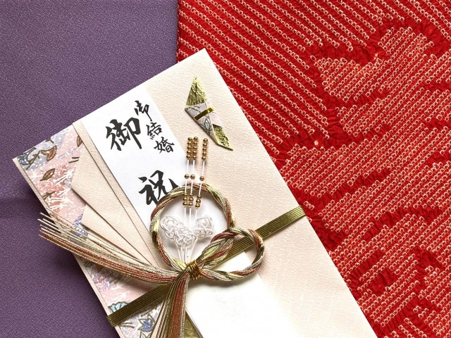 결혼 축하의 축의금은 결혼식 당일에 접수대에서 전합니다. 금액은 친구나 지인은 30,000엔 정도, 가족은 30,000~50,000엔 정도가 일반적입니다. 참고로 형제, 자매의 경우는 일반적으로 30,000~100,000엔 정도를 건네는 편이라고 합니다.
