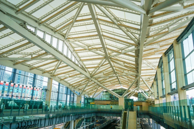 올림픽에 발맞춰 도쿄 야마노테선에 신설된 ‘다카나와게이트웨이(高輪ゲートウェイ駅)역’(2020)도 구마 겐고가 설계를 맞았습니다. 천정의 목재와 종이 느낌의 프레임은 창호지를 바른 문인 장지(障子)에서 착상을 얻었다고 합니다.