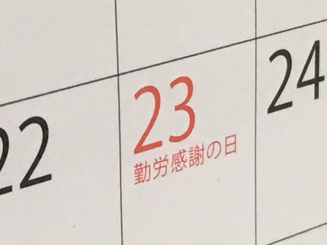 11월 23일은 ‘노동 감사의 날’로 축일법에서는 ‘노동을 존중하고, 생산을 축하하고, 국민 서로에게 감사하는 날’로 되어 있습니다. 요약하면, ‘일하는 사람 및 생산물에 감사합시다’ 하는 날입니다. 어린이들이 일하는 부모님께 선물을 하거나, 가사일을 돕거나 하며 감사의 마음을 표현해주기도 합니다.