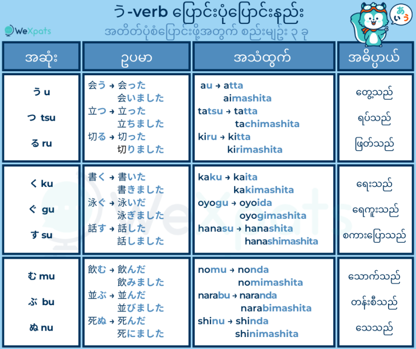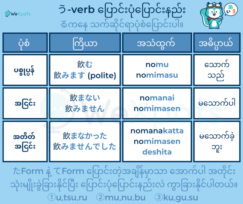 Suru Verb နှင့် ပုံမှန်မဟုတ်သော Verb များ