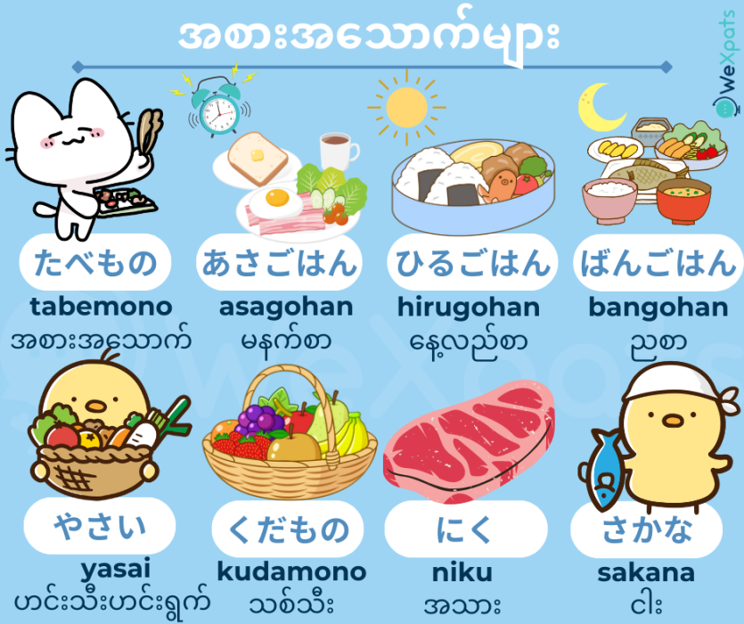 နာမ်ဇယားတွေကို ခွဲပြီး မိတ်ဆက်လာတာ နောက်ဆုံးအပိုင်းရောက်လာပြီဖြစ်ပါတယ်။ ဒီနေ့မှာတော့ အပိုင်း ၅ အနေနဲ့ ခန္ဓာကိုယ်၊ အဝတ်အစား၊ အစားအသောက်၊ စာရေးကိရိယာ၊ စာလေ့လာခြင်း တို့နဲ့ ပတ်သက်တဲ့ နာမ်တွေကိုဖော်ပြလိုက်ပါတယ်။
