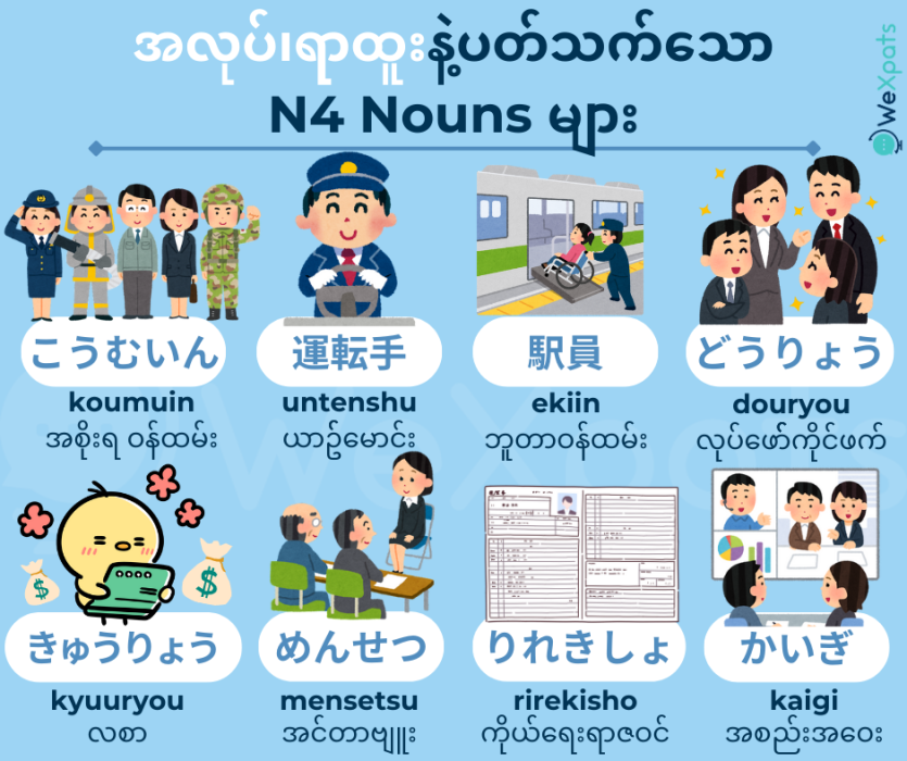 - အလုပ် နဲ့ လုပ်ငန်းခွင်နဲ့ သက်ဆိုင်တဲ့ နာမ်များ