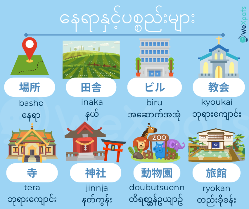 နေစရာ ပစ္စည်းတွေနဲ့ ပတ်သက်တဲ့ စကားလုံးတွေကိုတော့ အောက်ပါလင့်ကနေ ဝင်ကြည့်နိုင်ပါတယ်။