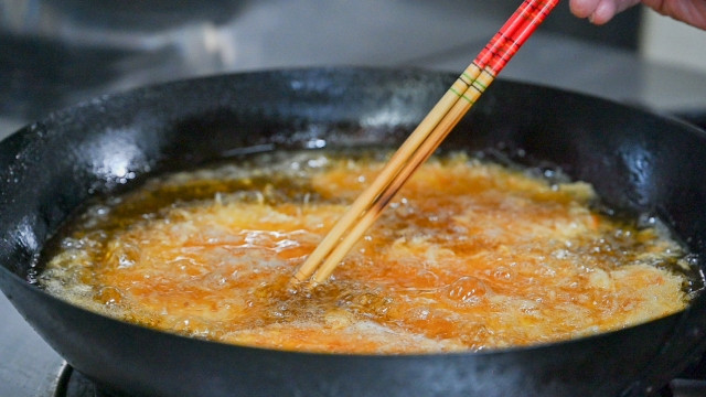 - အဆင်ပြေသွားပြီဆိုရင်တော့ ဆီပူထဲထည့်ပြီးတော့ ကြွပ်အောင်ကြော်လို့ရပါပြီ။ ဆီကိုတော့ ၁၇၀ ကနေ ၁၈၀ ဒီဂရီလောက် ပူအောင်ထားပြီးတော့ ၃ မိနစ်လောက်ကြော်လိုက်ရရပါပြီ။