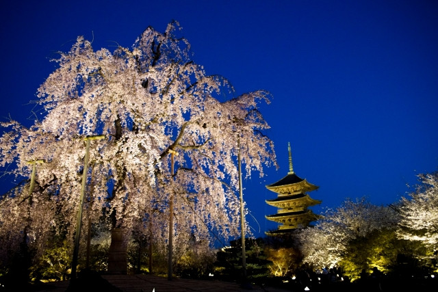 ချယ်ရီပန်းရာသီနှင့် ကျိုတိုမြို့ကိုလဲ ခွဲခြားလို့မရပါဘူး။ ချယ်ရီပန်းပွင့်တဲ့ ရာသီရောက်ရင်တော့ ကျိုတိုမြို့တွင်းမှာဆိုရင်တော့ ညဘက်ကြီး ချယ်ရီပန်းတွေကို မီးထွန်းပြသတဲ့နေရာတွေ အများကြီးရှိပါတယ်။ အထူးသဖြင့် ဘုရားကျောင်းတွေမှာတွေ့ရလေ့ရှိပါတယ်။ နာမည်ကြီး Kiyomizu deara ဘုရားကျောင်း၊ Toji ဘုရားကျောင်း တို့မှာ ညဘက်ချယ်ရီပန်းကိုမီးထွန်းပြီးတော့ပြသလေ့ရှိပါတယ်။