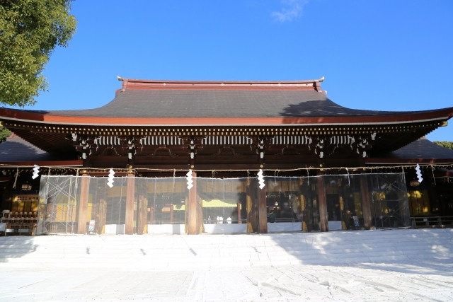 မေဂျီဘုရားကျောင်းသည် ၁၉၂ဝခုနှစ်ဝန်းကျင်က မေဂျီဧကရာဇ်နှင့် သူ၏ကြင်ယာတော်တို့၏ဝိညာဉ်အား ရည်စူးပြီး တည်ဆောက်ထားသည့်နတ်ကွန်းဖြစ်ပါသည်။ တိုးတက်သည့် လျှပ်စစ်မြို့တော်ကြီးအတွင်းတွင် တည်ရှိသည့် သစ်တောများစိမ်းစိုစွာနှင့်တည်ရှိပြီး ရိုးရာမင်္ဂလာပွဲများလည်းကျင်းပလေ့ရှိသော မေဂျီဘုရားကျောင်းသည် လမ်းလျှောက်အပန်းဖြေရန်အတွက်လည်း သင့်တော်လှပါသည်။ မေဂျီဘုရားကျောင်းသည် ဂျပန်တစ်နိုင်ငံလုံးတွင် လာရောက်သူအများဆုံးနတ်ကွန်းဖြစ်သည်။ နှစ်စဉ် နှစ်သစ်ကူးအချိန်အခါတွင် လူပေါင်းသုံးသန်းခန့် လာရောက်ဆုတောင်းကြပါသည်။