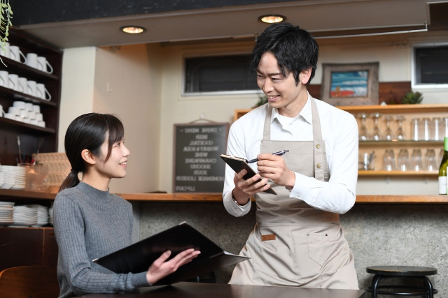 အချိန်ပိုင်းအလုပ်လုပ်ရန်ပုံမှန်သူငယ်ချင်းတစ်ယောက်ကိုပြောတဲ့ဂျပန်စကားမျိုးပြောလို့မရဘဲယဥ်ယဥ်ကျေးကျေးပြောရမှာဖြစ်ပါတယ်။ သေချာပေါက် 「尊敬語(そんけいご)、丁寧語(ていねいご)」တို့ကို အသုံးပြုပြီး ဝန်ဆောင်မှု ပေးရမှာဖြစ်ပါတယ်။ဆိုင်မှာ