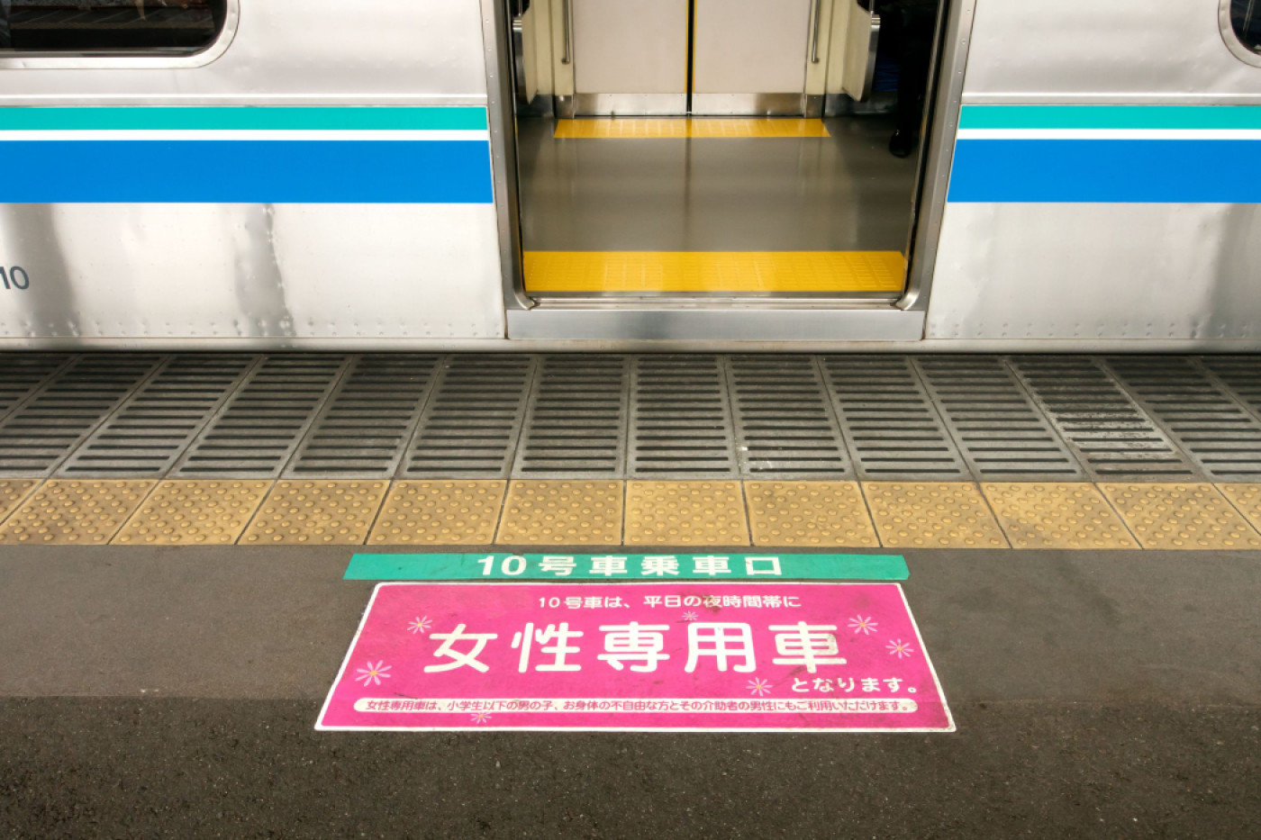 ဂျပန်မှာတော့ တချို့နေရာတွေမှာ အမျိုးသမီးသီးသန့် ရထားတွဲတွေရှိပါတယ်။ အမျိုးသမီးသီးသန့်ရထားတွဲတွေတော့ သာမန်အမျိုးသားတွေ စီးခွင့်မရှိပါဘူး။ ကျန်းမာရေးအခြေအနေ မကောင်းမွန်တဲ့သူတွေ မူလတန်းကလေးတွေမျှသာ အသုံးပြုခွင့်ရှိပါတယ်။ ဒီလိုမျိုးသတ်မှတ်ချက်တွေကလဲ အချိန်သတ်မှတ်ချက်တွေရှိပါတယ်။ ရထားလိုင်းအပေါ်မူတည်ပြီး ကန့်သတ်ချက်တွေ ကွာခြားနိုင်ပါတယ်။