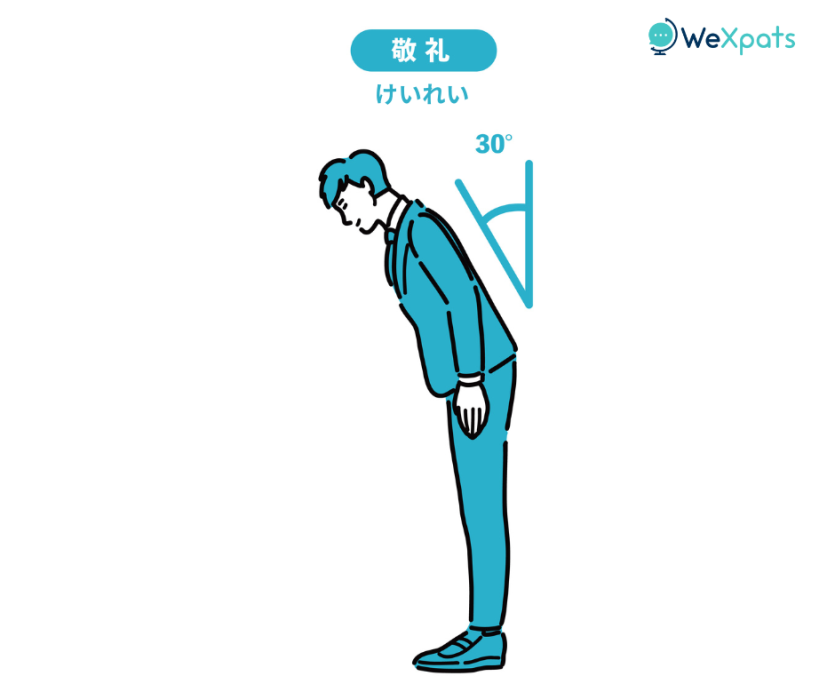 敬礼 Keirei ဆိုတာကတော့ ရပ်ပြီး အရိုအသေပေးတဲ့ Formal အကျဆုံးတစ်ခုဖြစ်ပြီး ဦးခေါင်းကို ၃၀ ဒီဂရီ ခန့်ငုံ့ရမှာဖြစ်ပါတယ်။ အများအားဖြင့် ဧည့်သည်တွေကို အရိုပေးပေးတဲ့ အချိန်၊ ကြိုဆိုတဲ့ အချိန် ၊ နောက်ပြီး ပထမဆုံးအကြီမ်တွေတဲ့ သူတွေကို နှုတ်ဆက်တဲ့ အချိန်မှာ အသုံးပြုလေ့ရှိကြပါတယ်။