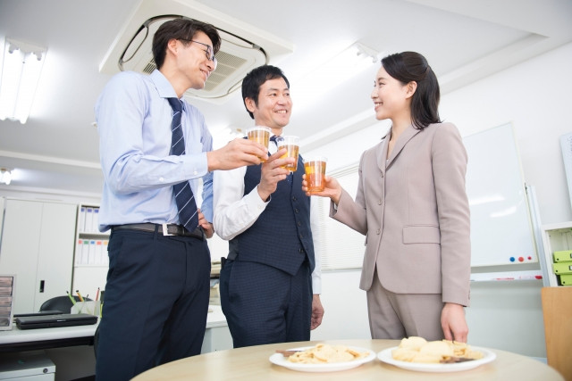 ဂျပန်ကုမ္ပဏီများမှ ၀န်ထမ်းများသည်တစ်လလျှင်အကြိမ်ကြိမ်ကျင်းပသောသောက်စားပွဲများတွင်ပါ၀င်ခြင်း၊ အတူတကွစားသောက်ခြင်းနှင့်တစ်ဦး နှင့်တစ်ဦးသိကျွမ်းလာနိုင်ကြသည်။ တိတိကျကျပြောရလျှင်အဖွဲ့နှင့်အဆင်ပြေလိုပါကာမရှိမဖြစ်လိုအပ်ခြင်းမှာသောက်သုံးခြင်းအစီအစဉ်များဖြစ်သည်။ သင်မည်ကဲ့သို့သောက်ရမည်ကိုမသိပါကသစ်သီးဖျော်ရည်သို့မဟုတ်ရေကိုသင်မှာယူနိုင်သည်။ပတ်၀န်းကျင်ရှိလူများနှင့်စကားပြောပါ၊ ဂရုတစိုက်နားထောင်ပါ၊ ယဉ်ကျေးစွာပြောဆိုပါ။