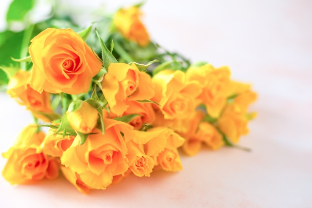 တို့အတူအဝါရောင်နေကြာပန်းစည်းများသည်အဝါရောင်နှင်းဆီလက်ဆောင်များကဲ့သို့ရေပန်းစားသည်။
