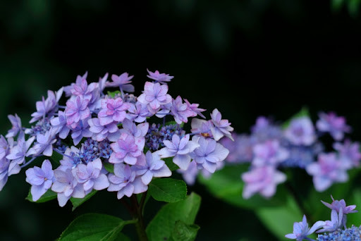 ရှေးဟောင်းဂျပန်မျိုးစိတ် Ajisai ပန်းများကို Meigetsuin တွင်စိုက်သည်။ အပြာရင့်ေရာင်နက်ရှိုင်းစွာရှိနေသော Ajisai ပန်းများ၏လျှို့ဝှက်ဆန်းကြယ်သောအလှတရားဖြစ်သည်။