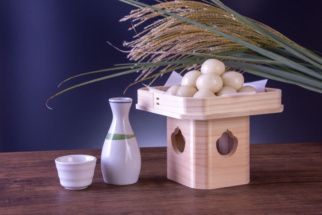 ဂျပန်မှာတော့ ရေနှင့် အရက်ကို ဘုရားးနှင့် နတ်ဘုရားကျောင်းတွေမှာ ပူဇော်လေ့ရှိကြပါတယ်။ ဒါကြောင့်မို့လို့ ပူဇော်လေ့ရှိကြပါတယ်။ Tsukimi အတွင်းမှာတော့(新酒 shinshu) လို့ခေါ်တဲ့ အရက်အမျိုးအစားတွေကို ပူဇော်လေ့ရှိကြပါတယ်။