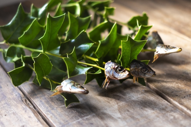 နောက်တစ်ခုကတော့ မကောင်းတဲ့ အရာတွေကို ကြိုတင်ကာကွယ်တယ်ဆိုတဲ့ ယတြာအနေနဲ့ Iwashi လို့ခေါ်တဲ့ ဆာဒင်းငါးကင်ပြီး ငါးခေါင်းကို ဟော်လီအရွက်အပေါ်မှာ ခေါင်းနဲ့ အလှဆင်တဲ့ အလေ့အထ လဲရှိပါတယ်။ ဟော်လီအရွက်ကိုတော့ ဂျပန်လို 柊(hiiragi)လို့ခေါ်ပြီး၊ ဆာဒင်းငါးနဲ့ အလှဆင်ထားတာကိုတော့ 柊鰯(hiiragiiwashi)လို့ခေါ်ပါတယ်။