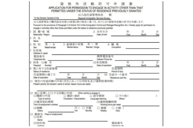 Caso não esteja no Japão: Preencha este o formulário( 資格外活動許可申請書(留学生が新規入国する場合)(Excel:20KB))