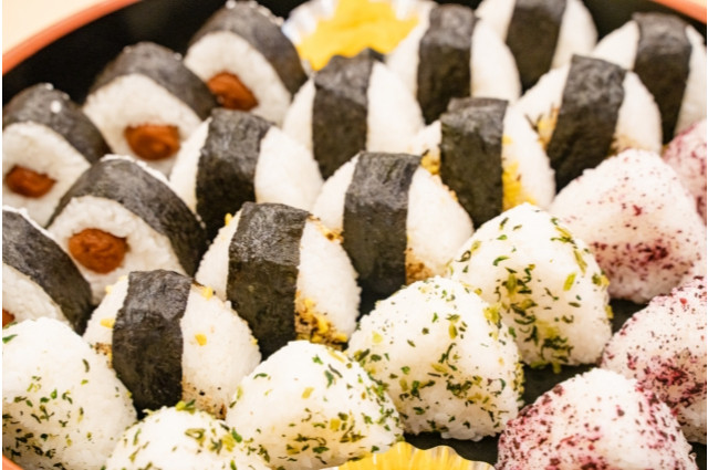 Onigiri, os bolinhos de arroz japoneses, também são conhecidos como omusubi (おむすび). Onigiri são fáceis de fazer e de comer, são feitos de arroz cozido, algas marinhas e algum recheio. Onigiri são preparados ao pegar arroz cozido e colocá-los em um formato triangular com as mãos, os mais populares são: atum maionese, salmão, umeboshi, carne e mentaiko.