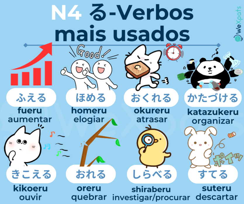 Com os verbos do N4 você será capaz de se expressar com mais detalhes, fazendo frases mais longas, além de ser necessário decorar novos kanjis também.