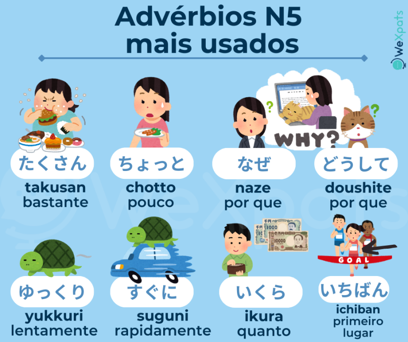 Aqui está uma lista dos 40 advérbios que mais aparecem na prova JLPT no nível N5!