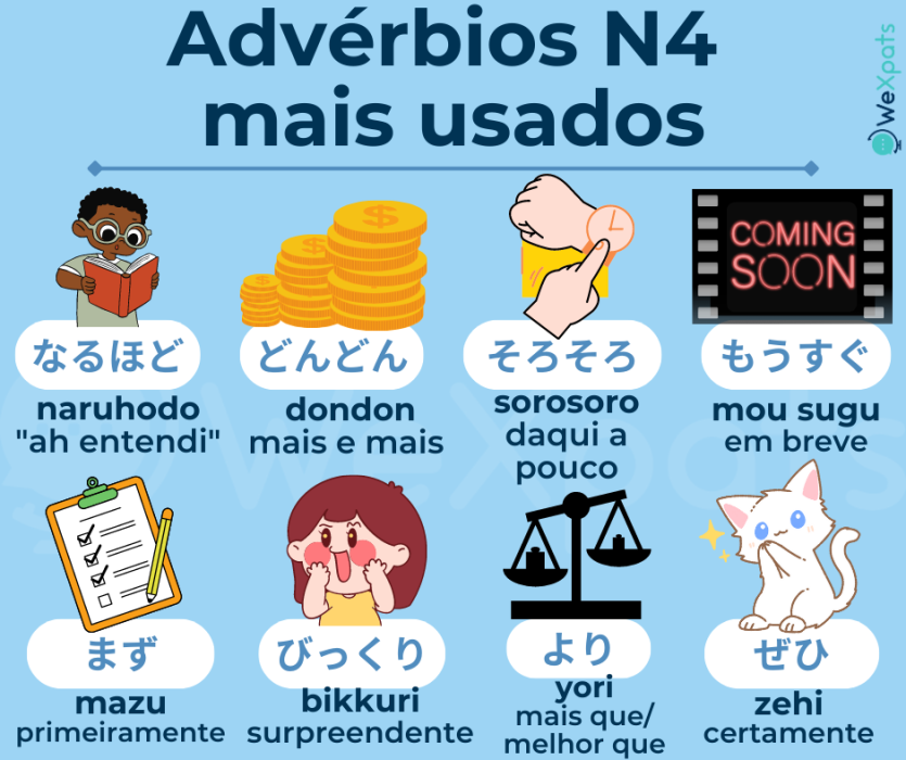 Então aqui está a lista dos 55 advérbios necessários para o JLPT no nível N4!