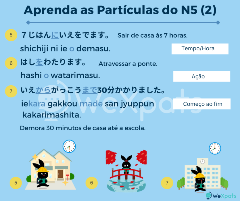 Como você pode perceber nos exemplos acima, existem muitas formas diferentes de usar as partículas, por isso é mais efetivo aprender como usar cada uma do que ficar traduzindo cada partícula e memorizando sem contexto.