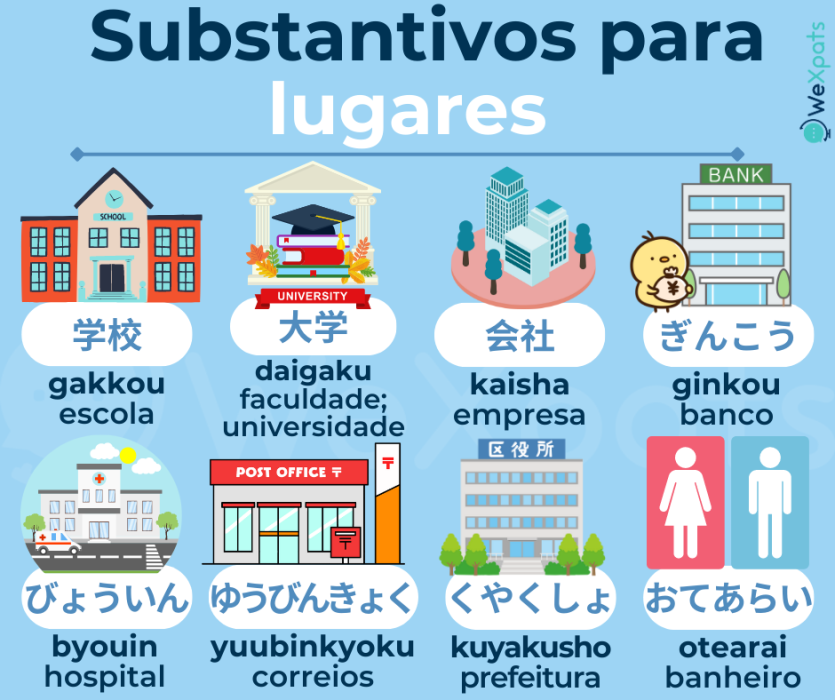 Estes são lugares específicos que você precisa saber para passar na prova do nível N5. Lembrando que os kanjs que você precisa saber estão em negrito!