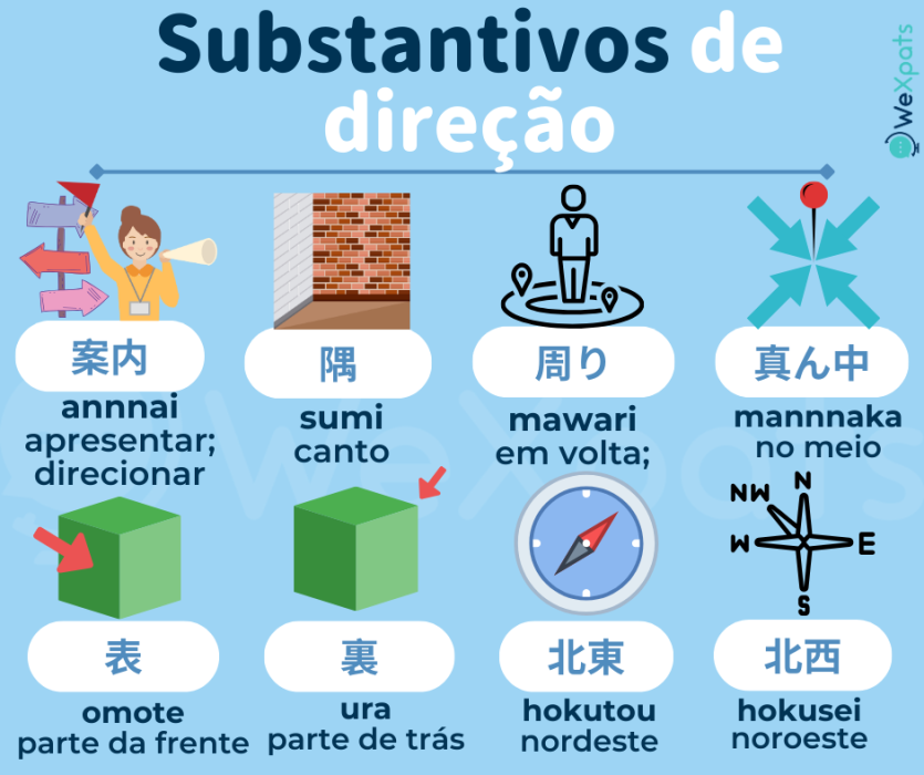É importante saber as direções para quando vier visitar o Japão. Nós já aprendemos as principais direções no neste artigo, então nesse iremos nos aprofundar um pouco mais. Um fato interessante é que os pontos cardeais são chamados de 東西南北 (tou-zai-nan-boku), o que também significa “vindo de todas as direções”.