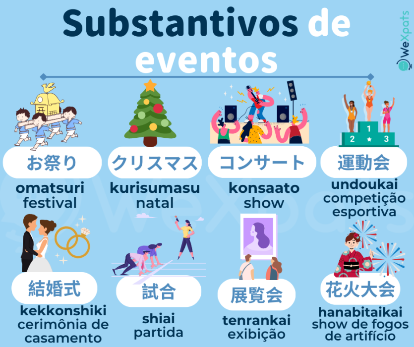 Nesta última parte, vamos aprender sobre eventos que você pode participar ao visitar o Japão, como festivais (omatsuri), shows de fogos de artifício (hanabitaikai), ambos eventos que acontecem durante o verão japonês.