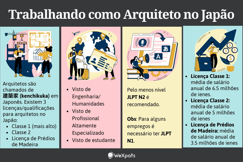 Para trabalhar como arquiteto no Japão, você precisa de um visto de trabalho. O escritório que você vai trabalhar, deve te oferecer os documentos necessários para que você peça seu visto, então não deixe de perguntar sobre o processo na hora da contratação.