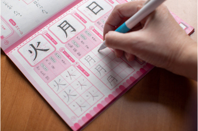 Kanji (漢字), caracteres de origem chinesa, são a última forma de escrita a ser aprendida, pois são as mais complexas. Kanjis são símbolos, e cada um transmite uma ideia, uma palavra. Por não expressar sílabas, o hiragana é usado para indicar como um kanji é lido foneticamente, essa forma do hiragana é conhecida como ふりがな (furigana). No dia a dia são usados em média 2.000 kanjis. Parece um número absurdo mas a verdade é que você não precisa saber todos para compreender as palavras à sua volta. Normalmente kanjis tem significados por si só que se mantêm ao se juntar com outro kanji, por essa razão muitas vezes é possível interpretar uma palavra. Vamos ver um exemplo: