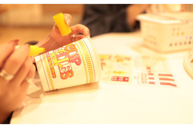 No museu você também pode criar o seu macarrão instantâneo! Você precisa adquirir o recipiente do cup noodles (400 ienes) e pode escolher o tipo de caldo e 4 ingredientes para colocar no seu macarrão personalizado. Além disso, no museu também estão disponíveis canetas coloridas para que possa decorar seu cup noodles.
