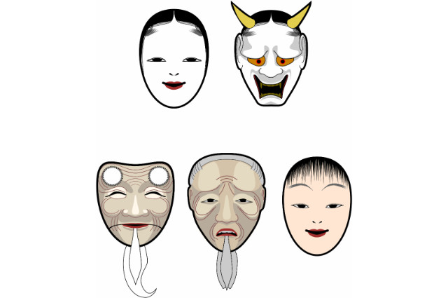 As máscaras do teatro nô são vistas como a expressão literal de uma verdade superior e conferem ao ator uma forma de vida mais elevada. As máscaras são esculpidas de tal forma que o real e o fantástico são combinados para produzir uma beleza sutil, são obras de arte de alta qualidade. Dependendo do movimento do ator e do ângulo que se dá à máscara, ela pode expressar feições diferentes no palco.