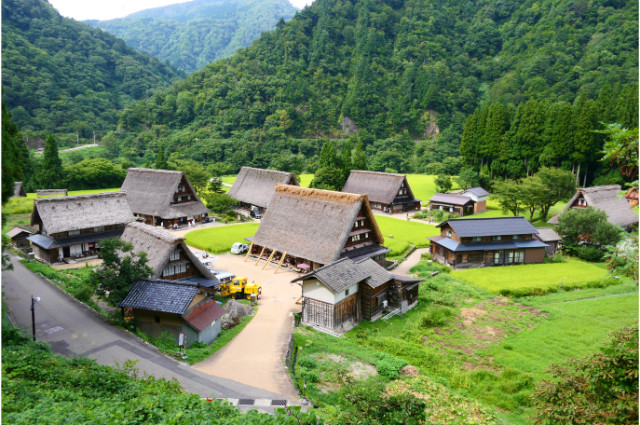 Aldeias Shirakawa e Gokayama (白川郷・五箇山の合掌造り集落) estão localizadas na província de Toyama (富山県). Essa região foi selecionada em 1976 para preservação de edifícios tradicionais, e depois em 1995 como patrimônio.