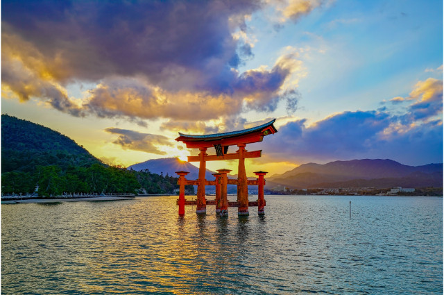 Santuário Itsukushima (厳島神社), está localizado na província de Hiroshima (広島県) na cidade de Hatsukaichi (廿日市市). E se tornou patrimônio cultural em 1996. O portão torii vermelho que pode ser visto acima do mar prende a atenção de turistas japoneses e estrangeiros.