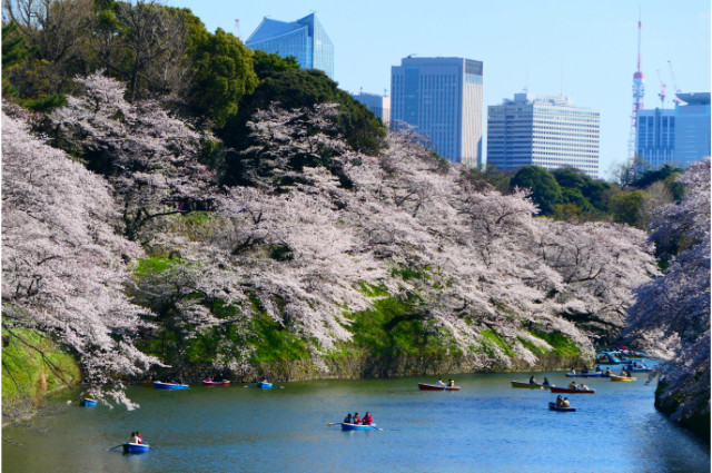 A área em volta do palácio imperial é rodeada de construções tradicionais e muito verde. Um exemplo é a área ao noroeste do palácio chamada Chidorigafuchi (千鳥ヶ淵), foto acima, um dos 12 fossos em volta do castelo, onde é possível apreciar as belas flores de cerejeira durante a primavera. Fossos são escavações profundas construídas para dificultar a entrada de inimigos no castelo. Caso passe por Tóquio, aproveite para conhecer!
