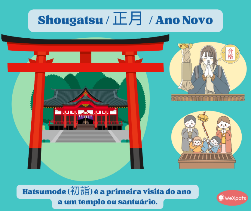 Hatsumoude (初詣) é a primeira visita do ano ao templo, apesar de muitos japoneses irem no primeiro dia do ano, de forma geral as pessoas vão durante os 3 primeiros dias do ano.