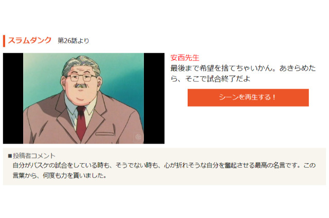 O interessante dessa frase é que ela é usada por um dos personagens secundários, o professor Anzai Mitsuyoshi (安西光義), dublado por Nishimura Tomomichi (西村知道) do anime de basquete Slam Dunk (スラムダンク). O significado da frase é "a partida só termina quando você desiste".