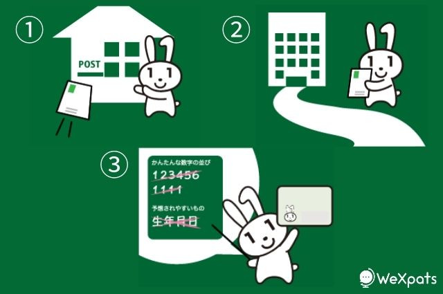 หากคุณยื่นขอออกบัตรตามวิธีที่อธิบายไว้ข้างต้น ทางที่ทำการเขตของคุณก็จะส่งโปสการ์ดแจ้งการรับบัตรไปที่บ้านของคุณภายใน 1 เดือน สิ่งที่เขียนอยู่บนโปสต์การ์ดแจ้งสถานที่รับบัตร ซึ่งคุณจะต้องโทรไปจองการรับบัตรล่วงหน้าตามเบอร์โทรศัพท์ที่แจ้งมาในโปสต์การ์ดนี้ ถ้าไม่โทรไปจองก่อนก็ไม่สามารถไปรับได้นะ
