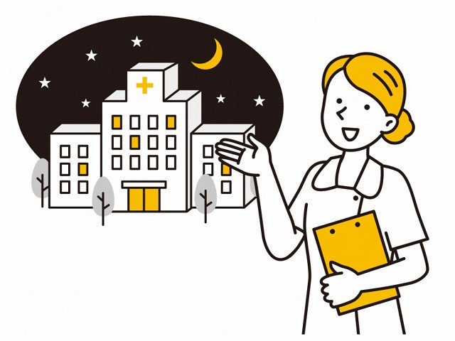 「休日・夜間診療 kyuujitsu・yakan shinryou」รักษาพยาบาลในวันหยุดและกลางคืน