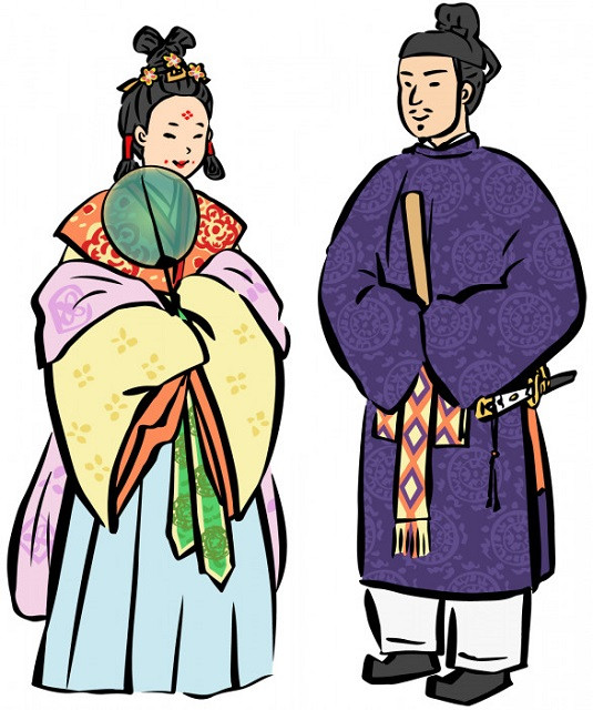 ในสมัยคามาคุระและมุโรมาจิ ฉันสวมเครื่องแต่งกายที่มีการปัก การย้อม และฟอกสี ดูเหมือนว่าไม่เพียงแต่ผู้หญิงเท่านั้นแต่ผู้ชายยังชอบชุดกิโมโนที่มีโทนสีสวยงามอีกด้วย